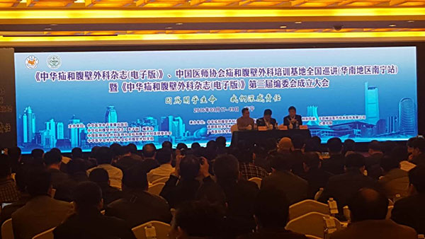 2016年3月18-19日,日照天一生物高層領(lǐng)導(dǎo)帶領(lǐng)銷售團(tuán)隊(duì)參加在廣西南寧舉辦的《中華疝和腹壁外科雜志(電子版)》、中國(guó)醫(yī)師協(xié)會(huì)疝和腹壁外科培訓(xùn)基地全國(guó)巡講(華南地區(qū)南寧站)暨《中華疝和腹壁外科雜志(電子版)》第三屆編委會(huì)成立大會(huì)。